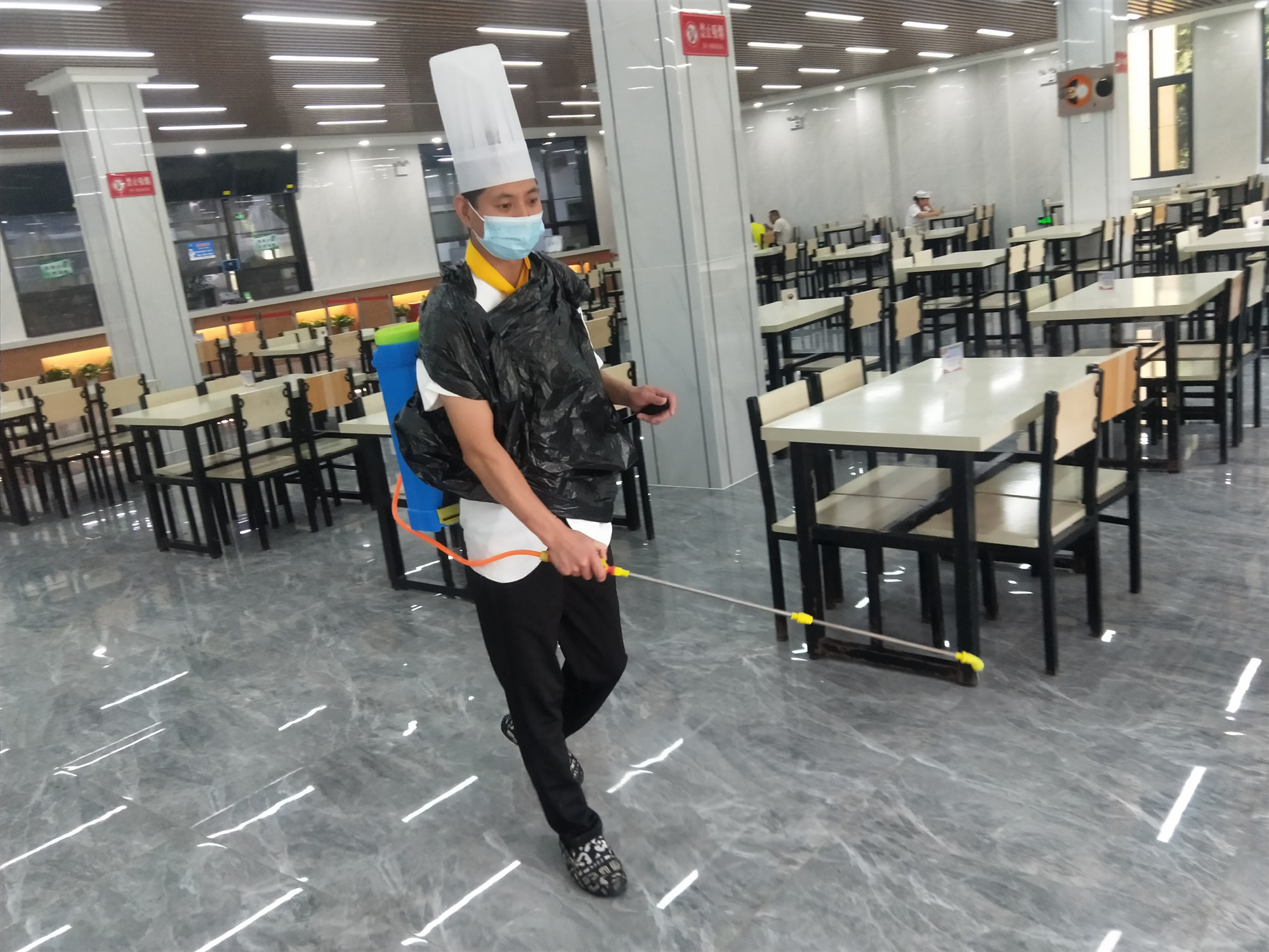 加強消毒管理,做好環(huán)境消殺。嚴(yán)格執(zhí)行公司疫情防控措施,就餐時間安排專人值守,維持秩序,督促就餐職工遵守防疫規(guī)定。同時,加強衛(wèi)生保潔,對就餐桌椅和餐具嚴(yán)格消毒,并安排工作人員每天定時對餐廳及周邊環(huán)境進(jìn)行消殺。